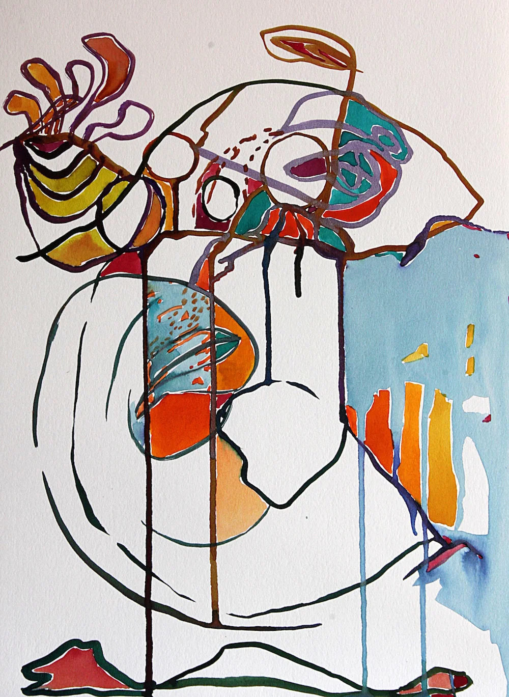Para desenvolver esse trabalho passei algumas semanas ouvindo as músicas de modo que elas pudessem fazer parte de mim antes de serem expressadas. Escolhi então a aquarela como a linguagem mais adequada para esse projeto, pela fluidez com que senti cada uma das notas musicais. Enquanto ouvia a música deixava meu corpo se expressar através das cores e movimentos que, naquele momento já transbordavam
