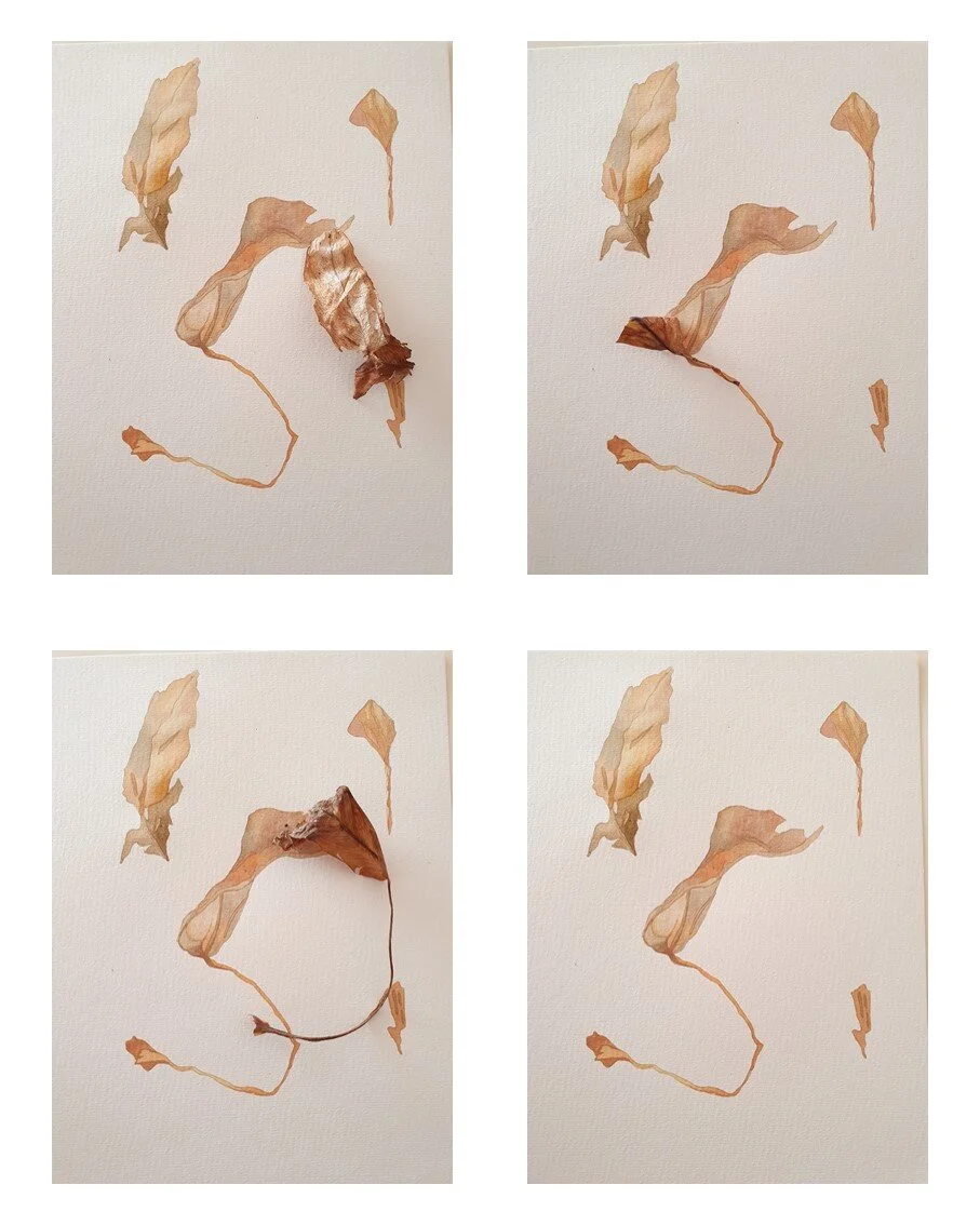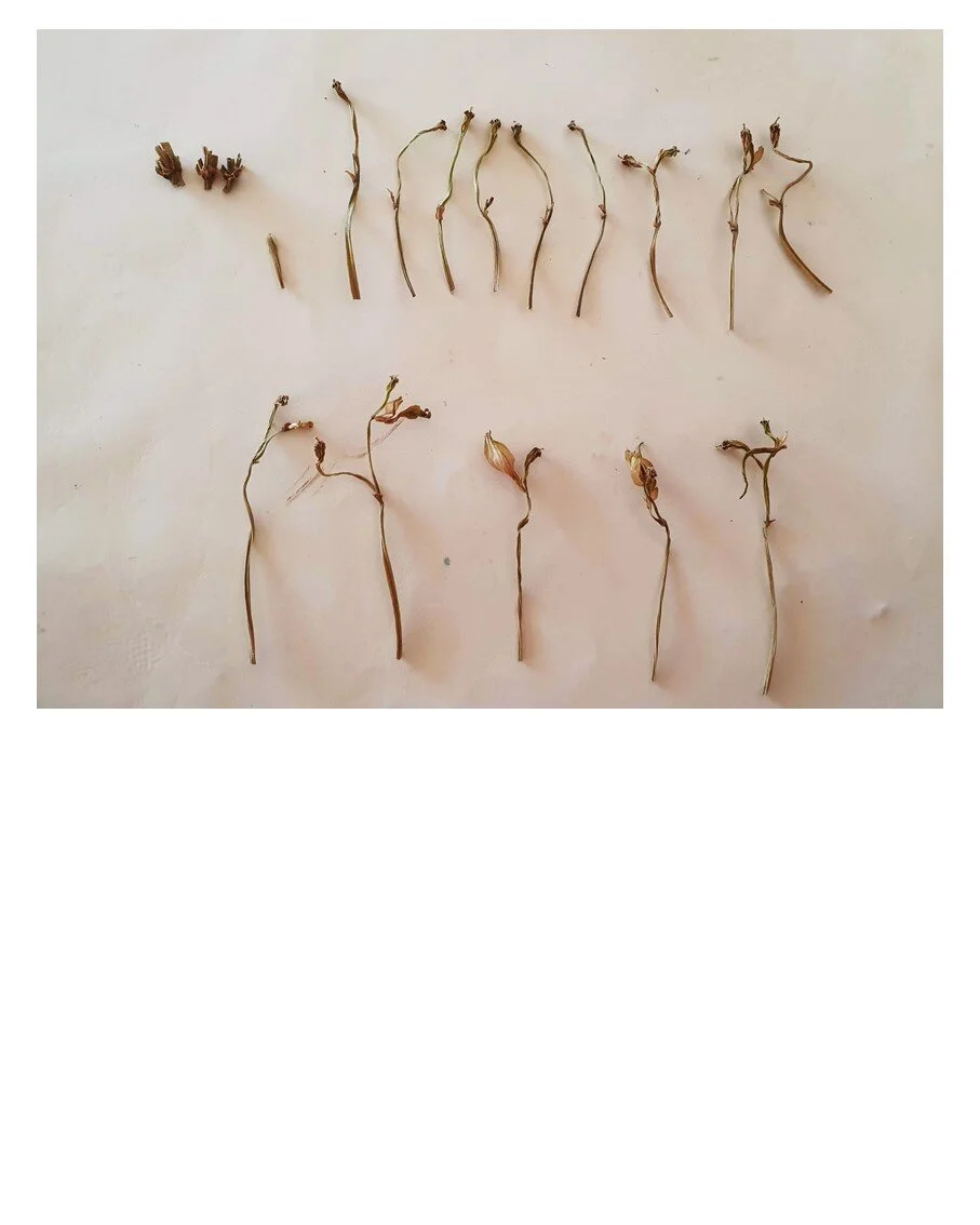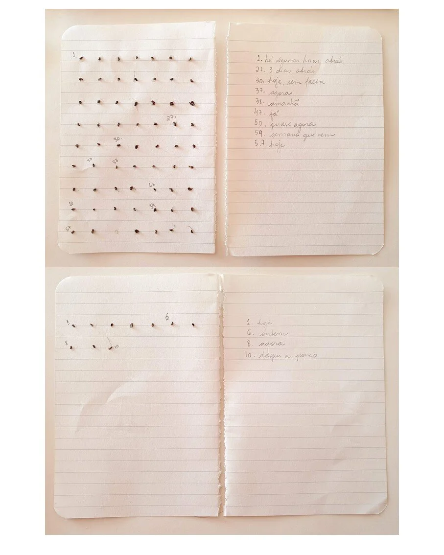 Parece que ao olhar sobre as imagens e textos que eu venho produzindo, me encontro com esse lugar de um quase tempo. Uma suspensão do tempo na medida em que aquilo que eu vejo já não reconheço facilmente. Embora debruçada na experiência de dissecação quase natural desses viventes, uma poeira, uma pluma, algo que eu poderia chamar de uma sujeirinha que descansa na superfície do papel, me parece agora essencial. Quando eu observo cada fragmento da planta se desfazendo e desaparecendo na mesa do ateliê, é possível compreender o quanto o último fragmento de planta é tão importante quanto olhar para a planta tal qual conhecemos, algumas vezes é dele que saem pequenos seres quase invisíveis em busca de um outro lugar de estar. o atlas de botânica é uma coleção de viventes e de reflexões causadas pelo tempo em que me demorei com esses fragmentos de vida.
