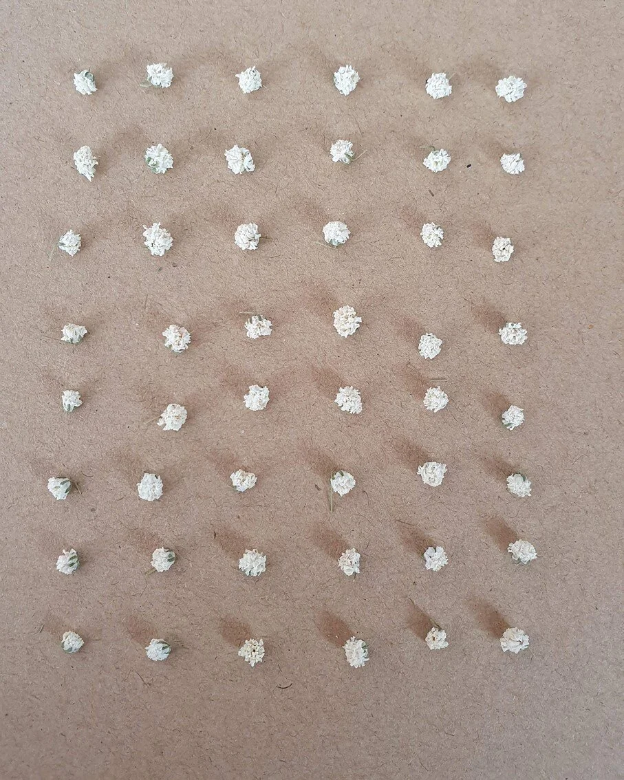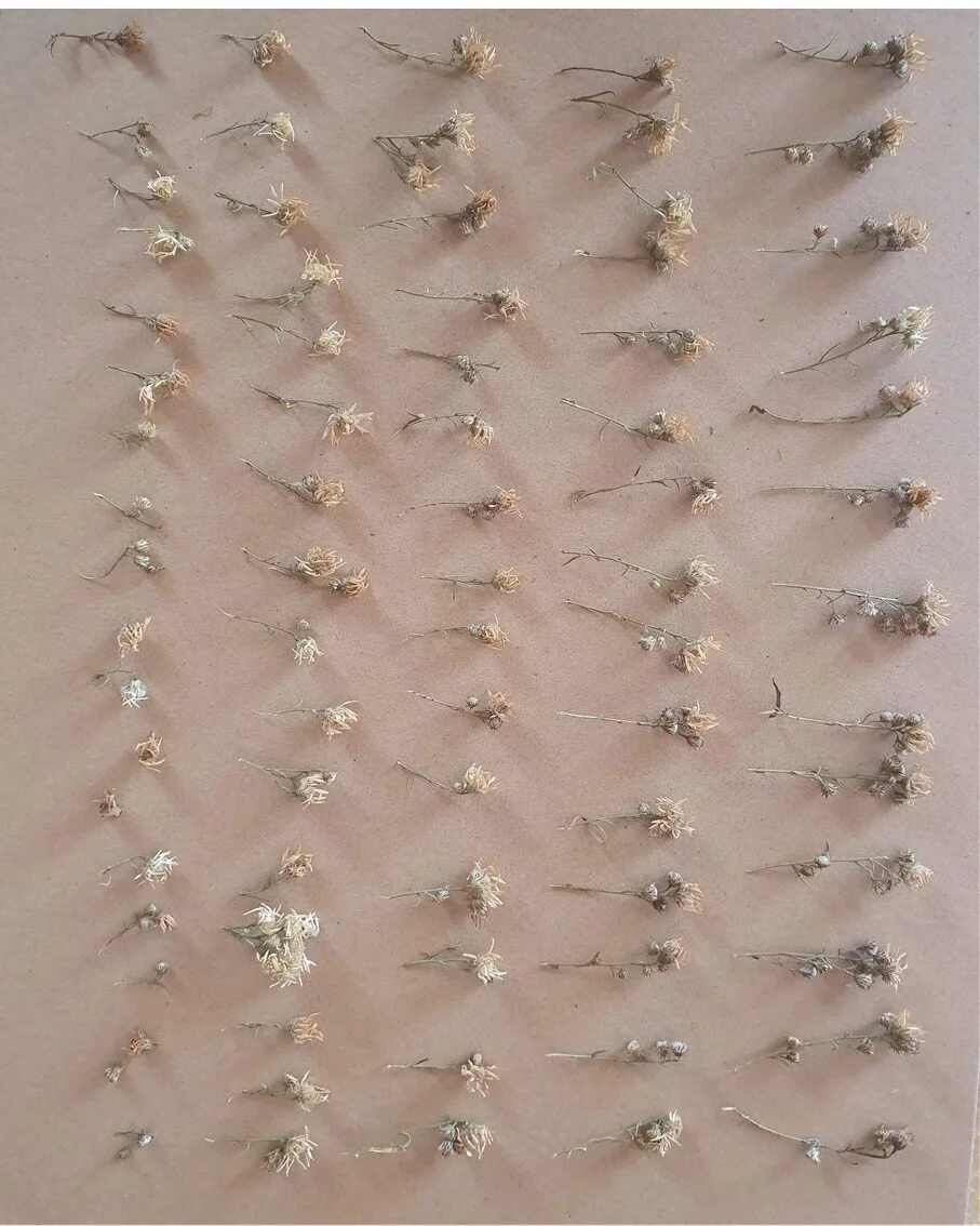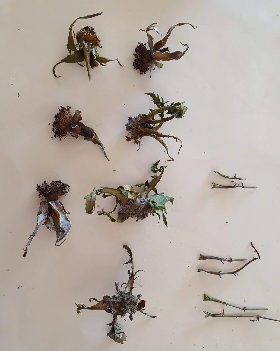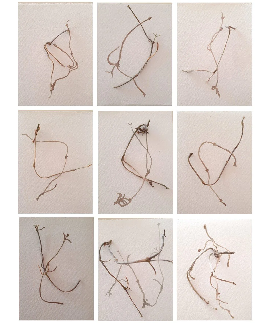 Parece que ao olhar sobre as imagens e textos que eu venho produzindo, me encontro com esse lugar de um quase tempo. Uma suspensão do tempo na medida em que aquilo que eu vejo já não reconheço facilmente. Embora debruçada na experiência de dissecação quase natural desses viventes, uma poeira, uma pluma, algo que eu poderia chamar de uma sujeirinha que descansa na superfície do papel, me parece agora essencial. Quando eu observo cada fragmento da planta se desfazendo e desaparecendo na mesa do ateliê, é possível compreender o quanto o último fragmento de planta é tão importante quanto olhar para a planta tal qual conhecemos, algumas vezes é dele que saem pequenos seres quase invisíveis em busca de um outro lugar de estar. o atlas de botânica é uma coleção de viventes e de reflexões causadas pelo tempo em que me demorei com esses fragmentos de vida.