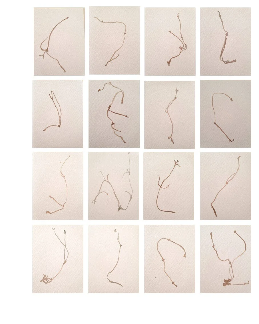 Nesses últimos anos, tenho trabalhado com elementos da natureza. Na medida em que meus valores foram se modificando, e a percepção do mundo também me veio essa vontade de me aproximar da natureza. Talvez como uma forma de me voltar para dentro. Observar elementos da natureza, coletar imagens em lugares de passagem, desenhar, escrever, buscar textos, filmes, imagens da internet e de livros, é o que tem me nutrido para pensar o trabalho, que é uma extensão de uma prática diária. Pedras, folhas, conchas, troncos, paisagens me motivam a pesquisar o desenho nas suas mais diversas formas. Seja através do desenho de observação, seja através do desenho inventado a partir das imagens mentais que já estão dentro de mim. Me interesso pela materialidade dos objetos, mas talvez nem tanto quando pelo desenho, que é o momento em que eu me conecto mais profundamente comigo mesma.