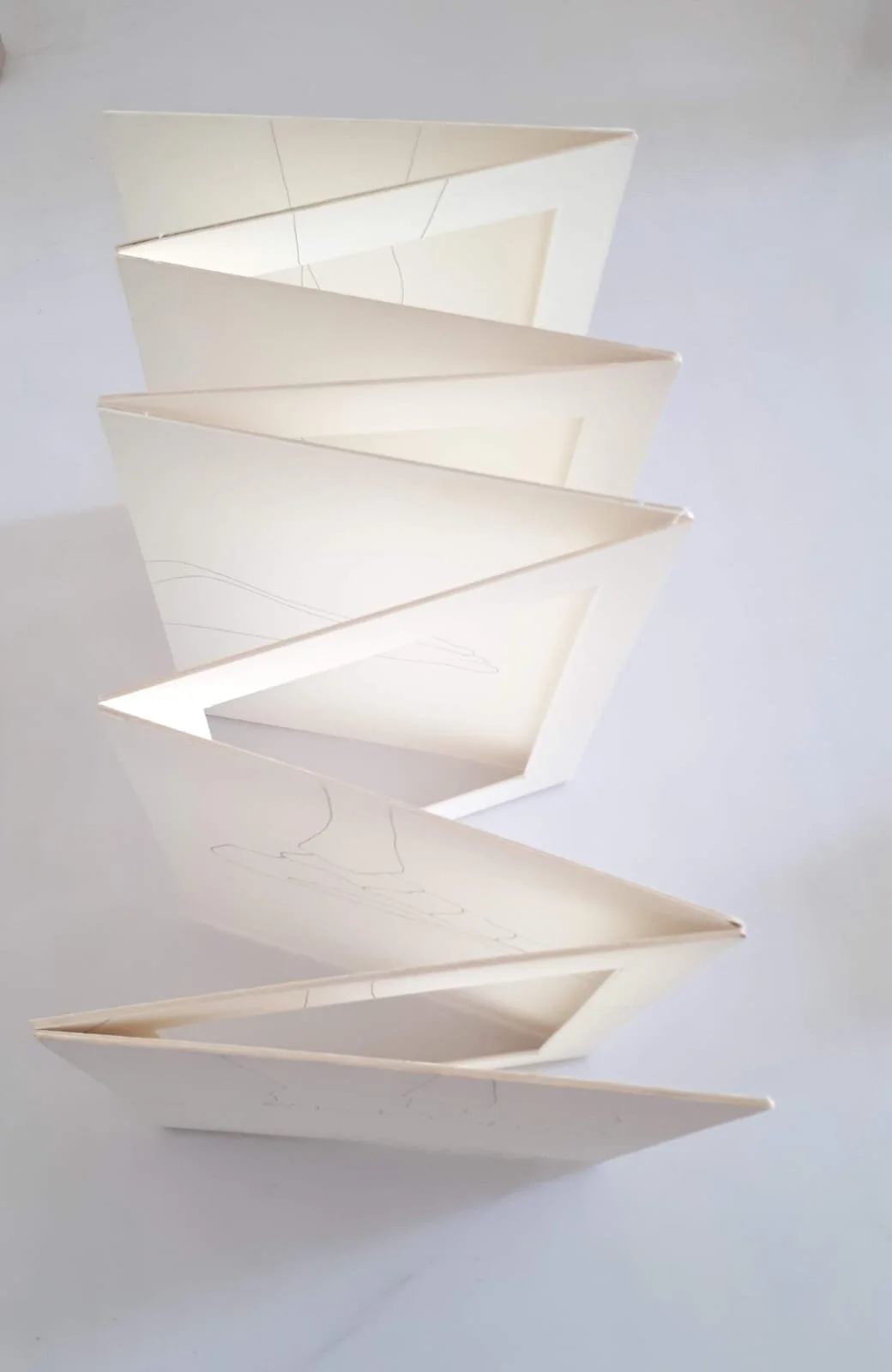 Ao longo do tempo, fui me aprofundando nos estudos passei a investigar o papel, as ranhuras, as dobras, as ausências... os excessos. Ora através do gesto ora da delicadeza, os projetos transitam de um lugar ao outro entre a literatura e artes visuais. Se interessa pela imagem tanto quanto pela palavra.