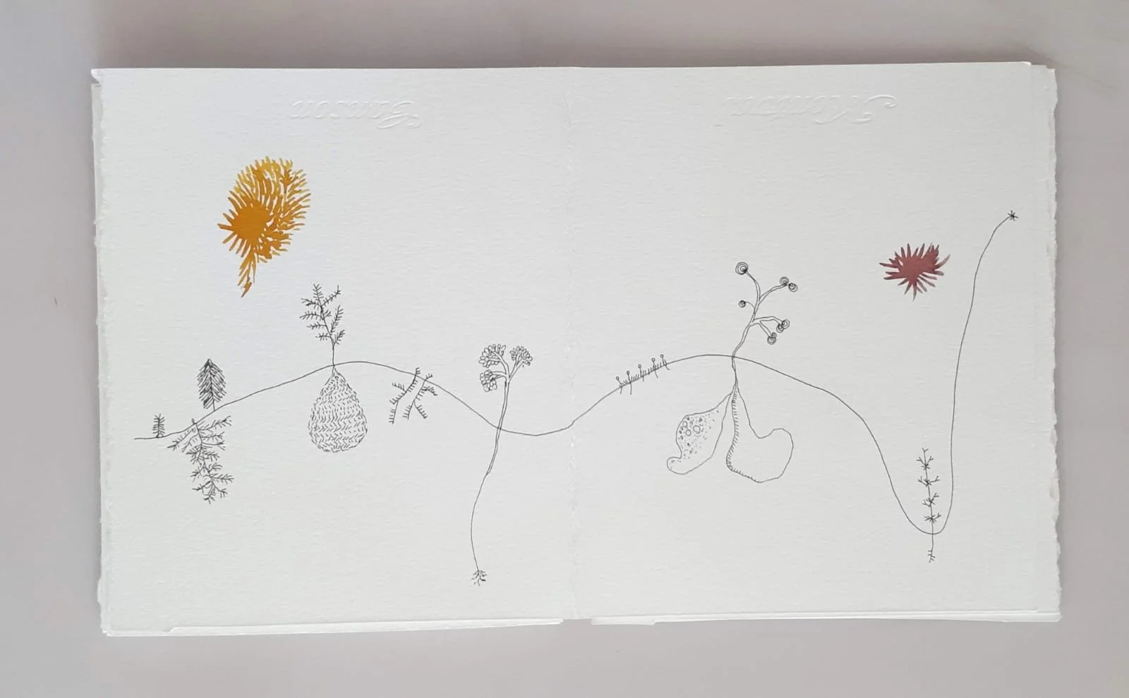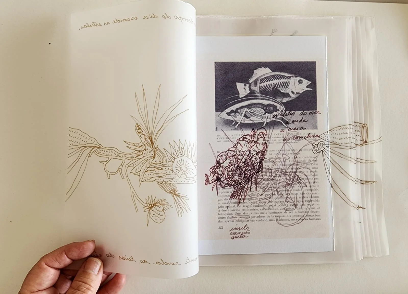 O desenho, a linha, as narrativas... visitar sebos, buscar papeis, me apropriar de objetos são ações que acabam levando para o suporte: o livro, não livro, livro/objeto, livro/instalação, e todas as possibilidades possíveis.