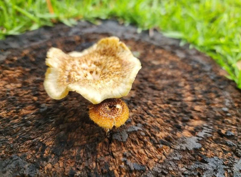 Em uma das primeiras caminhadas do ano, 2025, no centro de Campinas, depois de uma chuva forte que derrubou várias árvores no centro de Campinas, fui até o bosque dos Jequitibás e como o bosque estava fechado devido a queda de árvores, resolvi andar ao redor. Costumo caminha em um estado de espera, de devir, de encontros, com olhos atentos, e pisando leve no chão. Ao redor do bosque eu acompanhava as árvores e troncos próximos da cerca, e quase no final do percurso eles surgiram. como não sou uma estudiosa de fungos, apenas uma entusiasta, nem sempre consigo os identificar, algumas vezes acho que é outras não, mas vou sentindo e esperando que eles me contem se são ou não fungos.
